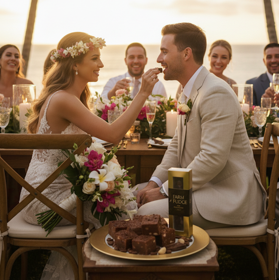 Add a taste of aloha to your bridal or wedding shower with Farm to Fudge Maui. Whether you’re planning a dessert bar, wedding favor boxes, or an intimate celebration, we bring sweetness that’s both health-conscious and unforgettable. Our vegan, gluten-free fudge is crafted from pure, plant-based ingredients and inspired by the beauty of Hawai‘i. Setup services are not included for dessert bars.